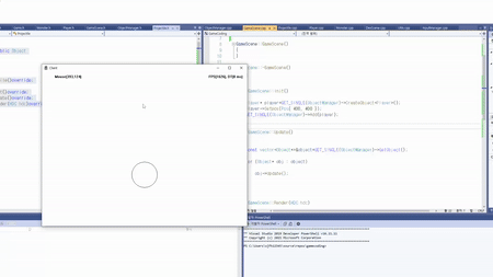 게임설계 하면서 가장 먼저 해야될 부분은 플레이어 생성이라고 생각한다. 일단 플레이를 할 수 있어야 그에 맞는 게임을 기능들을 추가할 수 있기 때문이다. 먼저 플레이어를 생성하고 플레이어를 대표할만한 원을 하나 그리도록 한다. 플레이어는 오브잭트를 상속받았기에 기본적인 구조는 오브젝트와 동일하다.