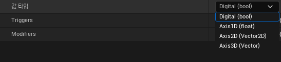 float:-1~1값을 입력값으로 준다.(이때 조이스틱이 아닌 -값은 IMC의 Modifiers Negate에서 설정이 가능하다.)